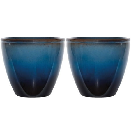 Suncast Seneca 16 Inch Decorative Resin Flower Planter Pot Blue Brown 2 Pack Walmart Canada